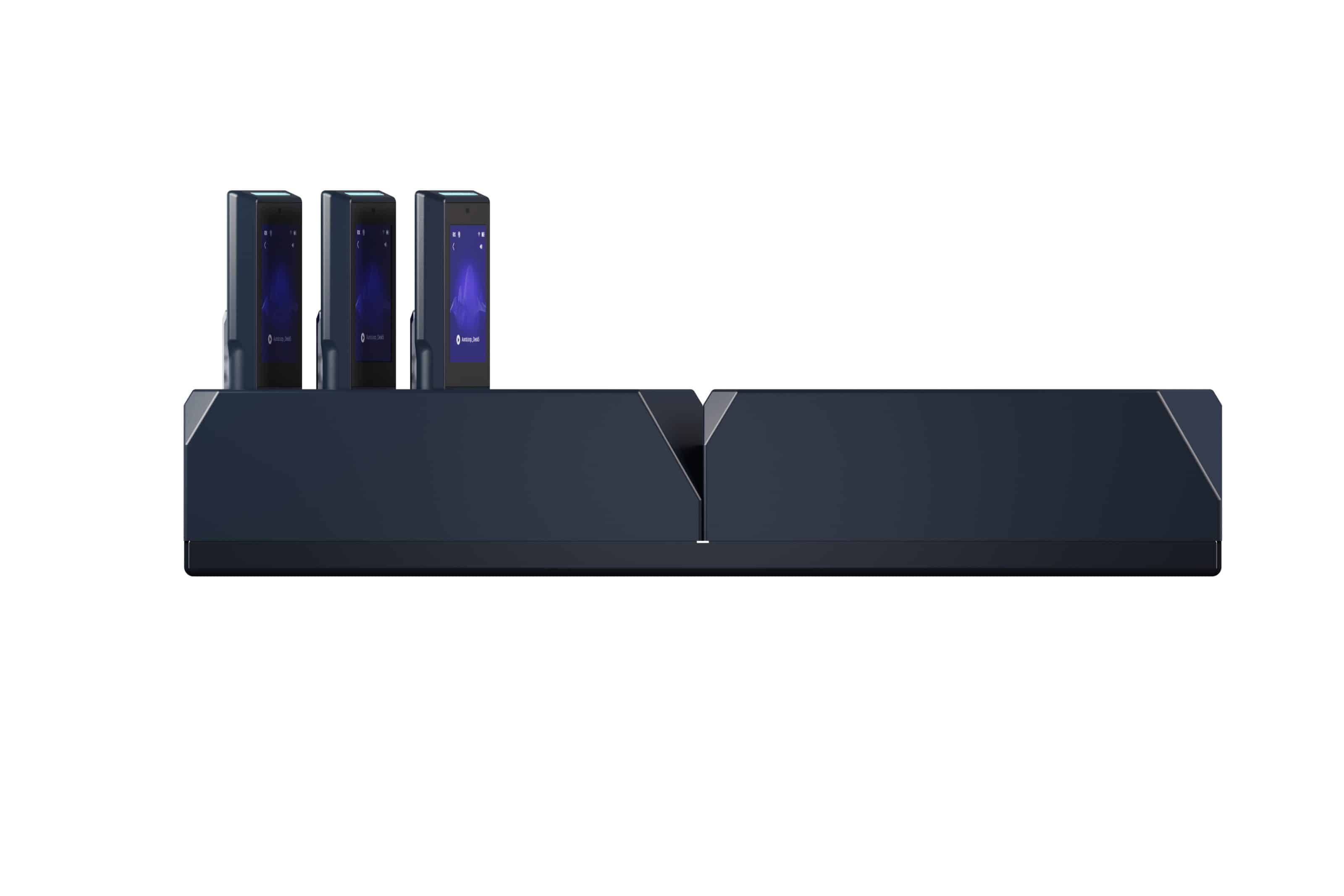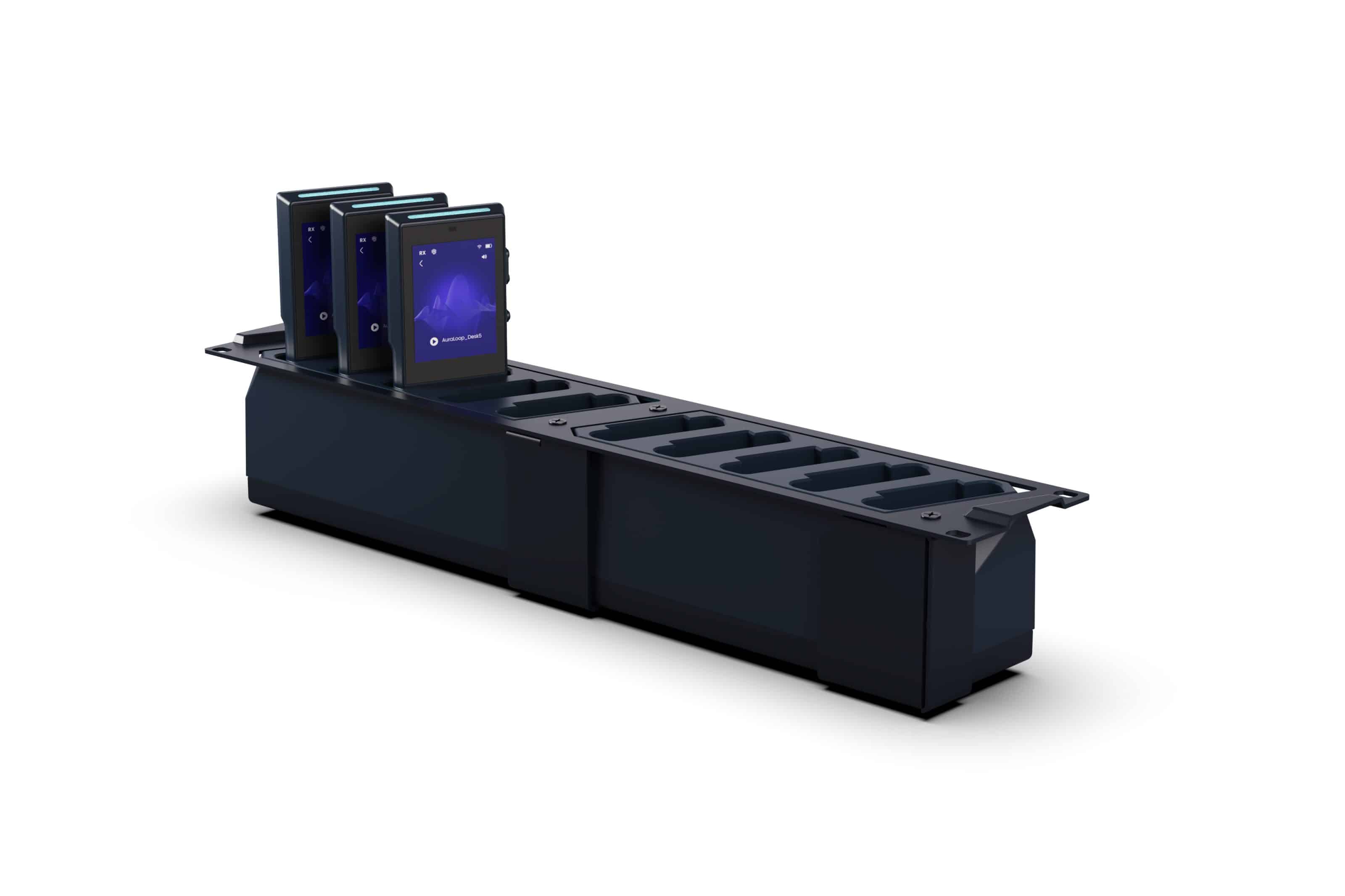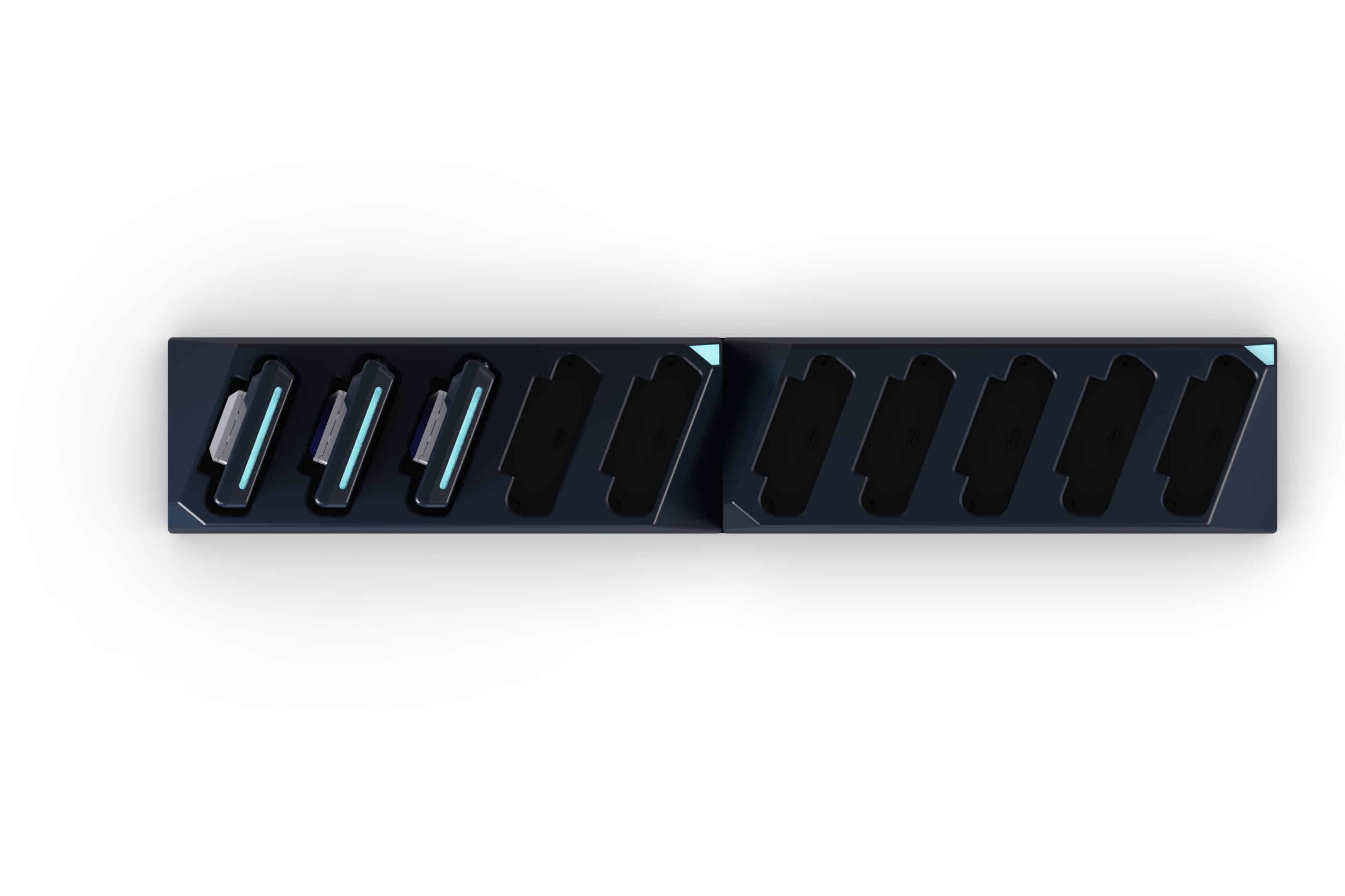 Smart charging station with 10 slots for AuraSTRX with USB-C configuration functions