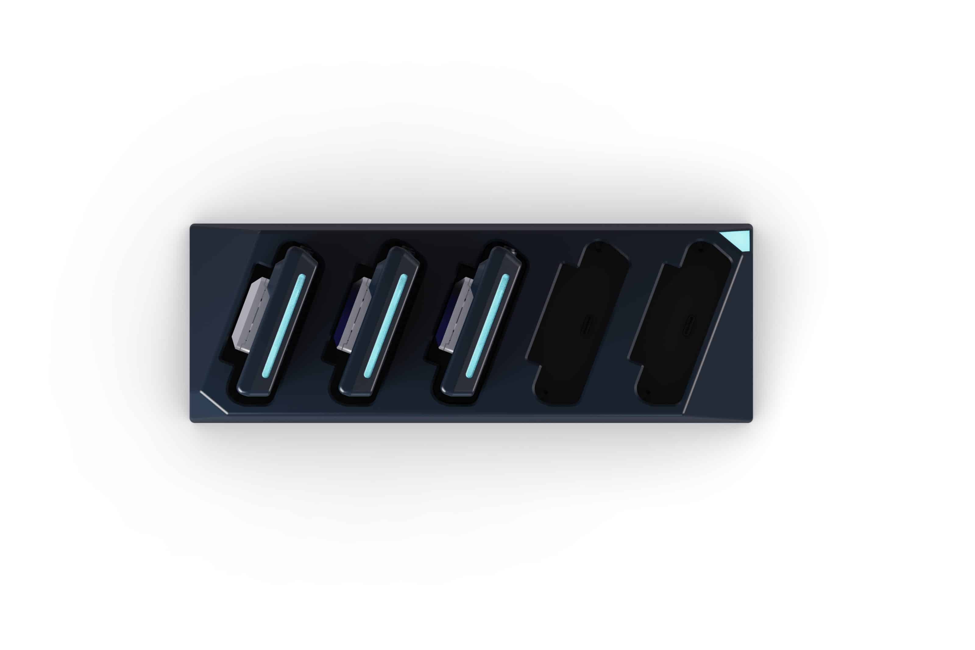 Smart charging station with 5 slots for AuraSTRX with USB-C configuration functions